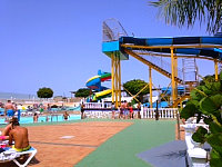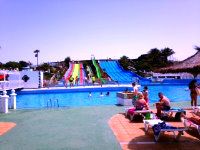 Wasseraktionen, Sonneterrassen, Abenteuerpark mit Seilrutsche, Paintball, Wasserspiele, elektronische Autos und viele weitere Überraschungen. Außerdem mit kleinem Supermarkt, Restaurants, und natürlich reichlich Flächen mit Liegestühlen.